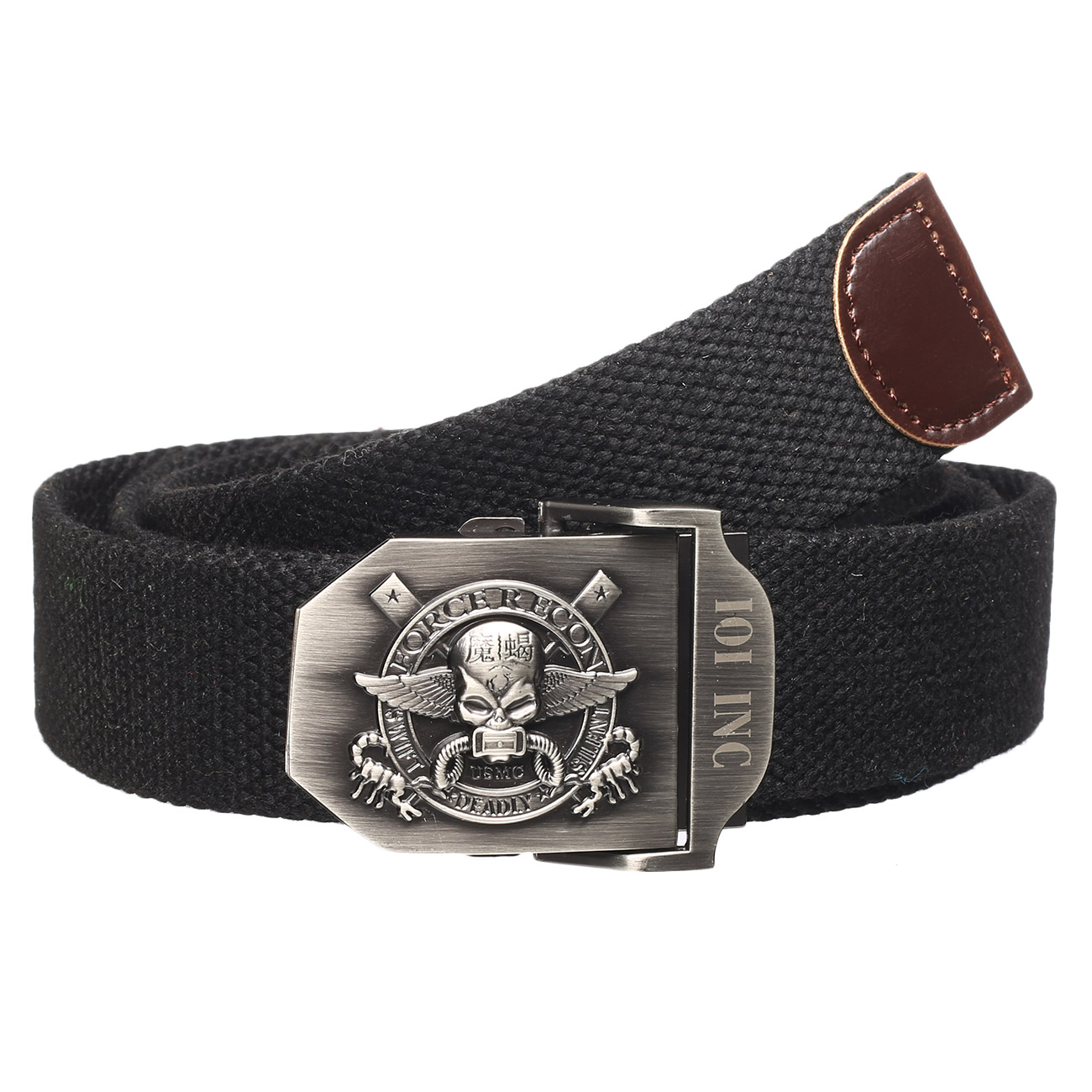 Der Style 6 Force Recon Gürtel aus dem Hause 101 INC ist ein robuster Hosengürtel mit dekorativer Schnalle. Das Ende des Gürtels wurde mit einer Verstärkung versehen, sodass dieser nicht ausfransen kann. Mit dem Metallschiebeverschluss kann der Gürtel individuell auf die passende Länge verstellt werden.