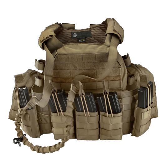 Der Operator Plattenträger wird direkt mit 5 Molletaschen (1x Triple M4, 2x Single M4 und 2x Multitasche) und einem 1-Punkt Trageriemen ausgeliefert.