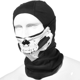 Balaclava mit Öffnung für die Augen. Je nach nach Tragevariante wird Mund, Nase und Hals zuverlässig bedeckt.