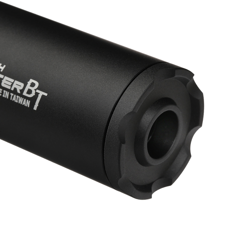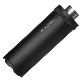 Die Schalldämpferattrappe besitzt eine Länge von 101 mm und ist im Auslieferungszustand mit der Montageaufnahme für 14 mm Linksgewinde ausgestattet. Dank dieser kann der Silencer an sehr viele Gewehre aufgeschraubt werden. Speziell für Pistolen liegt dem Silencer noch eine weitere Montageaufnahme mit einem 11mm+ Rechtsgewinde bei.