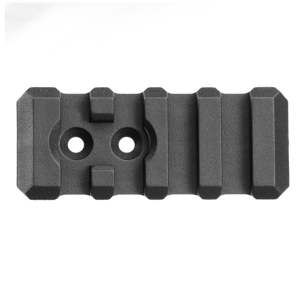 Die enthaltene 21mm Zielgerätschiene mit einer Länge von ca. 52 mm ist aus stabilem Polymer-Verbundkunststoff gefertigt. Angebracht wird die Schiene einfach anstatt des vorhandenen Fiber-Optik Visiers an der Hinterseite. Die beiden vorhandenen Schrauben werden für die Montage der Schiene weiterverwendet.