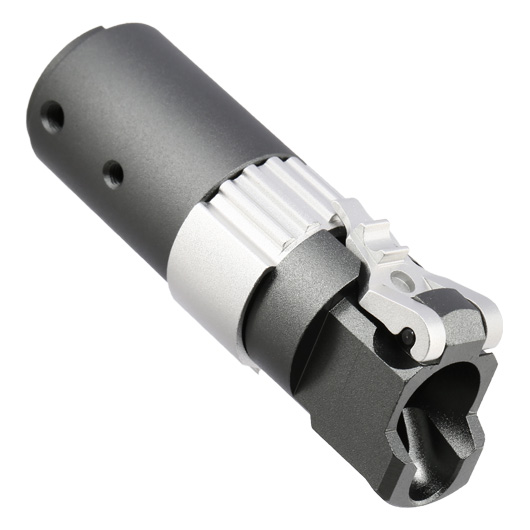 Das Grundgerüst des Hop-Up Aluminium Chambers von Action Army ist aus CNC-gefrästem Aluminium hergestellt. Diese Eigenschaft sorgt für eine perfekte Passgenauigkeit. Das neuartige Hop-Up System ist mit innovativer Technik ausgestattet, wodurch die Einstellung über einen Drehring (ähnlich AUG oder G36 Hop-Up System) durchgeführt wird. Dank dieser Eigenschaft lässt sich das System besonders präzise justieren. Weiterhin sorgt der Chamber für eine zuverlässigere Zufuhr der 6mm BB Rundkugeln aus dem Magazin. Auch die Haltbarkeit und Zuverlässigkeit wurde durch das verwendete Aluminium entscheidend gesteigert.
