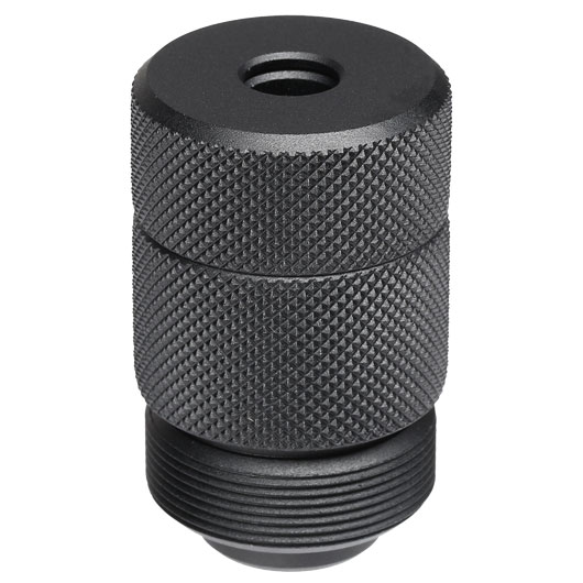 Aus Aluminium hergestellter Adapter für Barrel Extensions oder Silencer. Passend bei der Action Army Company T10 Bolt Action Snipergewehr Serie sowie Gewehre anderer Hersteller mit gleichem Innengewinde am Außenlauf. Praktisch ist bei der Type-A Variante die enthaltene Abdeckkappe. Diese kann aufgeschraubt werden, wenn kein Silencer verwendet wird.