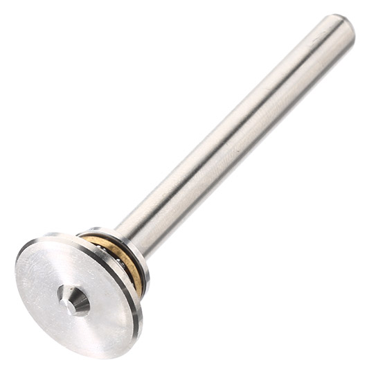 Der Spring Guide von Action Army ist aus robustem Edelstahl hergestellt und daher auch für sehr starke Tunings hervorragend geeignet. Durch das Design mit abgerundeter Front rutscht die Feder beim Komprimieren zuverlässiger über die Führung. Beim verbauten Kugellager handelt es sich hier um eine Variante aus Taiwan. Dieses verhindert ein verklemmen der verbauten Feder, wodurch ein gleichbleibendes Schussergebniss erzielt wird.