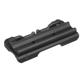 Gefertigt ist die Zielgerätmontage aus stabilem Aluminium, welches vom Hersteller im matten Farbton beschichtet ist. Das Zielgerät wird mittels zwei Schrauben (werden vom Zielgerät weiterverwendet - nicht enthalten) an der Montage befestigt.