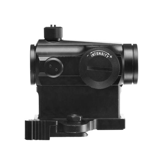 Das Aim-O T1 Type Red/Green Dot ist der Nachbau eines bekannten Rotpunktvisiers, dass sich besonders durch seine Kompaktheit und das geringe Gewicht auszeichnet. Der Zielpunkt ist höhen- sowie seitenverstellbar um dieses so auf die jeweilige Waffe einstellen zu können. Weiterhin sind jeweils 5 Helligkeitsstufen pro Farbe (Rot und Grün) nutzbar.