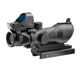 Das Aim-O TA01 ist ein Nachbau eines bekannten Zielfernrohres. Hier in der 4x32 Ausführung mit zusätzliche Mini RedDot-Viser für kurze Distanzen. Das Absehen kann dabei in den Farben Rot und Grün in jeweils 5 Helligkeitsstufen eingestellt werden. Das ermöglicht eine optimale Einstellung bei verschiedensten äußeren Gegebenheiten. Natürlich ist das Absehen ebenso Höhen- und Seitenverstellbar über die beiden Einstelltürme.