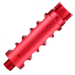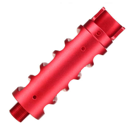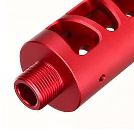 Der Außenlauf von AiRReX wird präzise im CNC-Herstellungsverfahren komplett aus Aluminium gefertigt. Aufgrund dieser Eigenschaft ist der Outer Barrel besonders passgenau hergestellt und lässt sich einfach gegen den Original Außenlauf aus Polymer-Verbundkunststoff tauschen. Vorne befindet sich ein 14mm- Linksgewinde, wodurch auch die Montage eines zusätzlichen Silencers jederzeit möglich ist. Diese Variante kommt im Skeleton-Design - die Lauflänge ist gleich zur Originalversion.