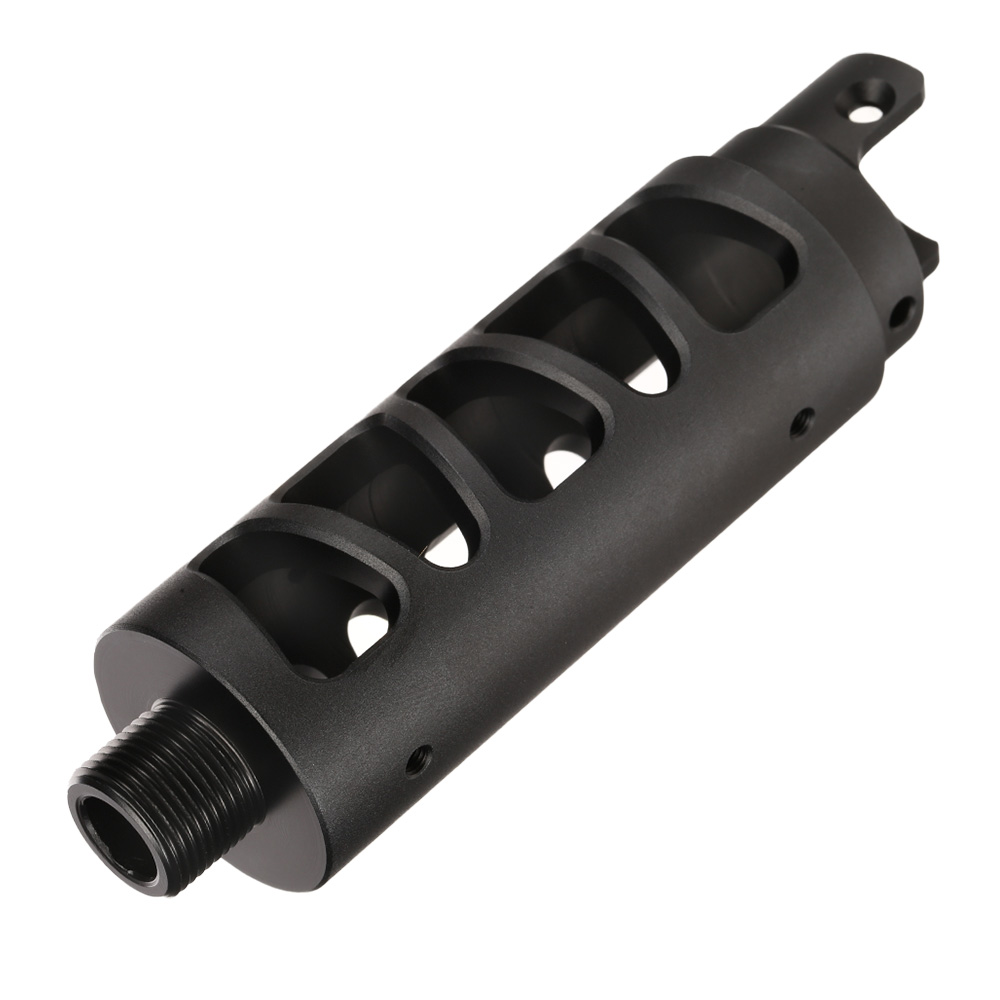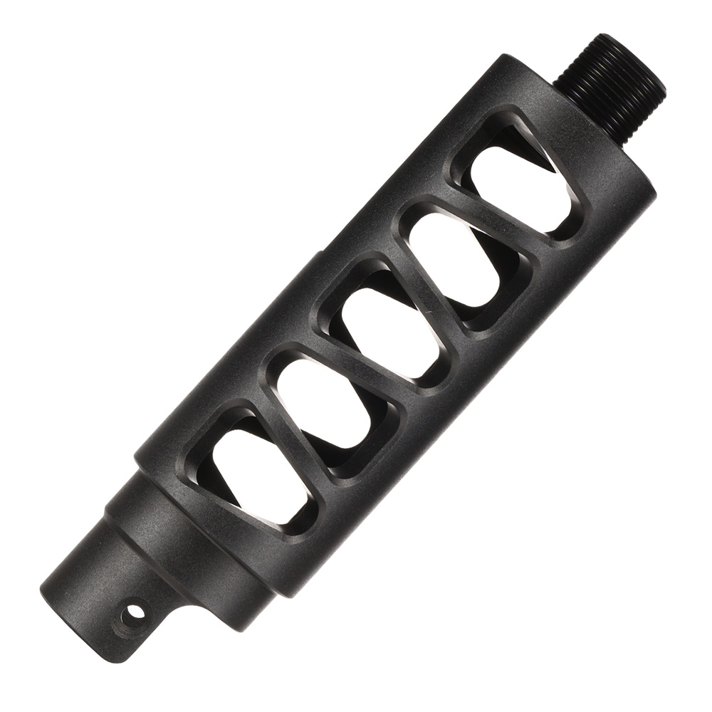 Der Außenlauf von AiRReX wird präzise im CNC-Herstellungsverfahren komplett aus Aluminium gefertigt. Aufgrund dieser Eigenschaft ist der Outer Barrel besonders passgenau hergestellt und lässt sich einfach gegen den Original Außenlauf aus Polymer-Verbundkunststoff tauschen. Vorne befindet sich ein 14mm- Linksgewinde, wodurch auch die Montage eines zusätzlichen Silencers jederzeit möglich ist. Diese Variante kommt im Skeleton-Design - die Lauflänge ist gleich zur Originalversion.