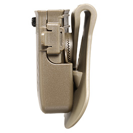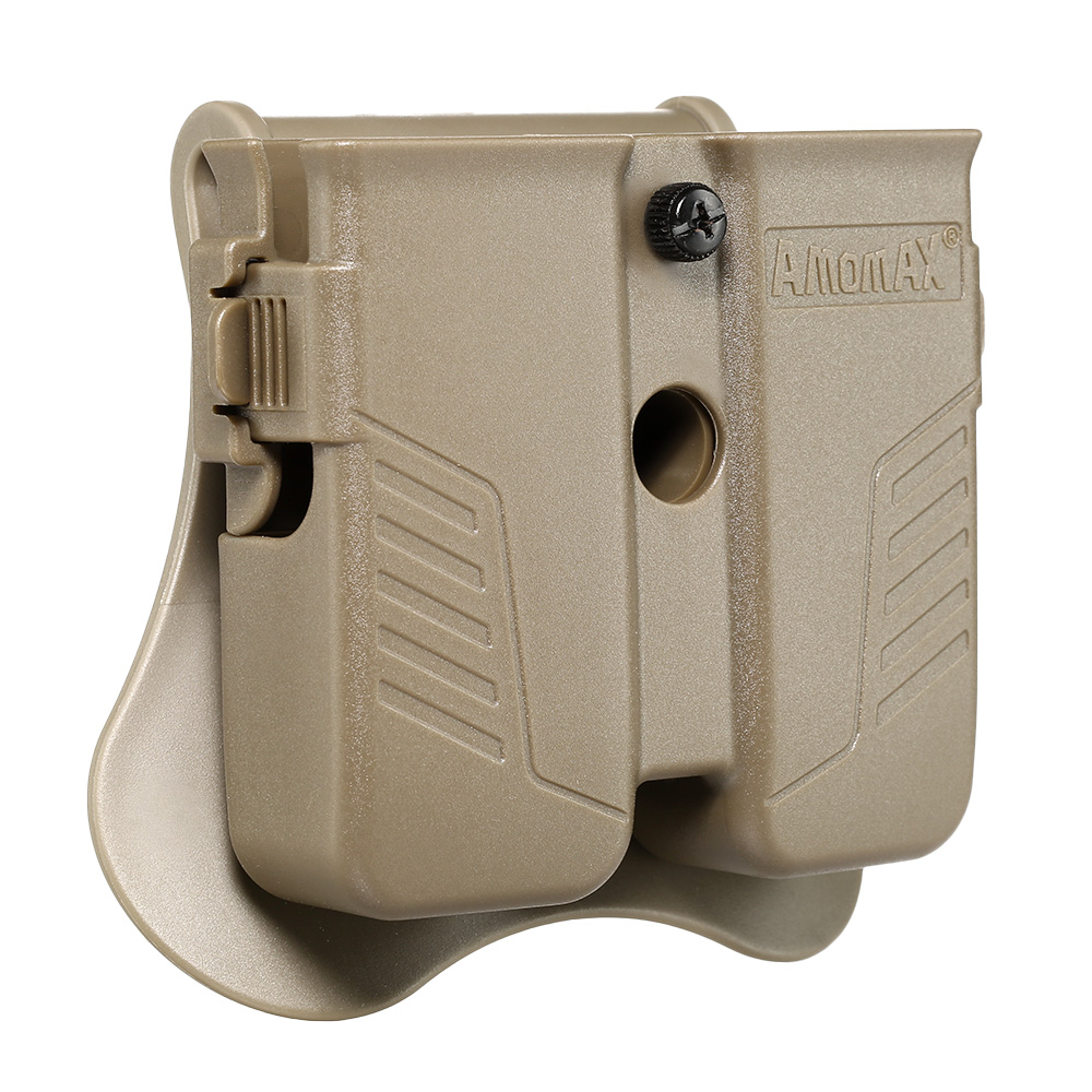 Amomax ist ein sehr bekannter Holster sowie Tragegurt Hersteller und ist in den Bereichen Sportschießen, Jagen, Militär und auch Airsoft aktiv. Sämtliche Holster werden von Amomax aus speziellen Polymer-Verbundkunststoff hergestellt. Dieses Material sorgt für ein besonders geringes Gewicht, bei gleichzeitig sehr hoher Stabilität. Neben dem eigentlichen Doppel-Magazinholster ist im Lieferumfang auch ein sogenanntes Paddle enthalten. Mit dieser Befestigung kann das Holster einfach am Gürtel oder der Hose angebracht werden. Es können Gürtel mit bis zu 50 mm Breite mit dem Holster verwendet werden.