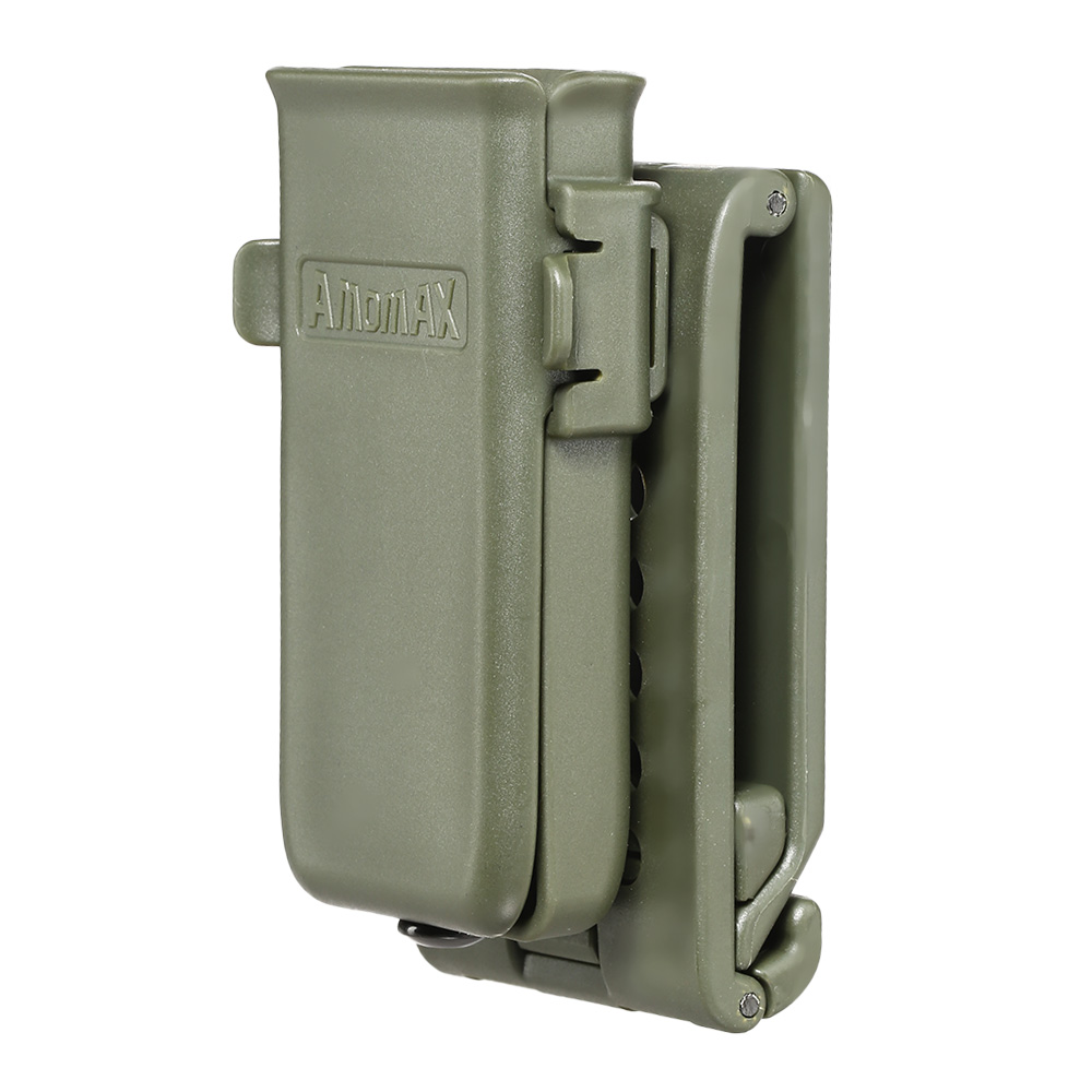 Amomax ist ein sehr bekannter Holster sowie Tragegurt Hersteller und ist in den Bereichen Sportschießen, Jagen, Militär und auch Airsoft aktiv. Sämtliche Holster werden von Amomax aus speziellen Polymer-Verbundkunststoff hergestellt. Dieses Material sorgt für ein besonders geringes Gewicht, bei gleichzeitig sehr hoher Stabilität. Neben dem eigentlichen Single-Magazinholster ist im Lieferumfang auch ein praktischer Gürtel-Clip oder Belt-Clip enthalten. Mit dieser Befestigung kann das Holster einfach am Gürtel angebracht werden. Es können Gürtel mit bis zu 66 mm Breite mit der Halterung verwendet werden.