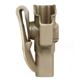 Amomax ist ein sehr bekannter Holster sowie Tragegurt Hersteller und ist in den Bereichen Sportschießen, Jagen, Militär und auch Airsoft aktiv. Sämtliche Passform-Holster werden von Amomax aus speziellen Polymer-Verbundkunststoff hergestellt. Dieses Material sorgt für ein besonders geringes Gewicht, bei gleichzeitig sehr hoher Stabilität. Neben dem eigentlichen Passform-Holster ist im Lieferumfang auch ein sogenanntes Paddle enthalten. Mit dieser Befestigung kann das Holster einfach am Gürtel oder der Hose angebracht werden. Es können Gürtel mit bis zu 50 mm Breite mit dem Holster verwendet werden.