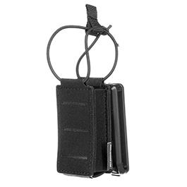 Für einen sicheren Halt sorgt weiterhin der kürzbare Nylon-Gummizug, mit dem das jeweilige Magazin zusätzlich fixiert wird. Dieser verhindert ein ungewolltes herausfallen des Magazins. Der Nylon-Gummizug wurde von Amomax so konstruiert, dass auch lange Extended Magazine fixiert werden können.