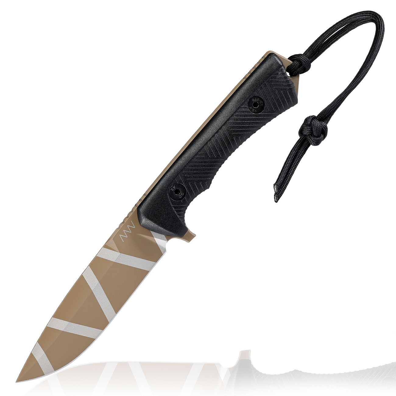 ANV Knives Outdoormesser P250 Sleipner Stahl Cerakote schwarz/coyote camo inkl. Kydexscheide