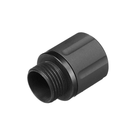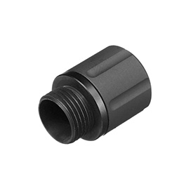 Aus Aluminium hergestellter Universal-Adapter für Schalldämpfer. Der Adapter kann bei allen Pistolen mit 12mm Linksgewinde im Außenlauf angeschraubt werden. Durch den Adapter ist es möglich, Schalldämpfer oder Laufverlängerung mit 14mm Linksgewinde an der Pistole zu montieren.