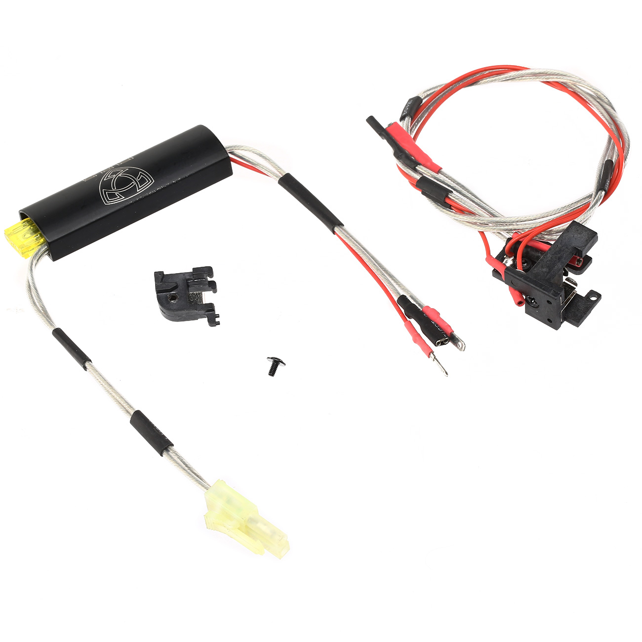 Die Schalteinheit kann bei allen S-AEG / AEG Gewehre mit Tokyo Marui kompatiblen Version 2 Gearboxen eingebaut werden. Der Kabelsatz in dieser Variante ist bereits vorkonfektioniert um den Akku im vorderne Handguard unterbringen zu können. Als Akku-Anschlusstecker ist die gängige Mini-Tam Variante angebracht.