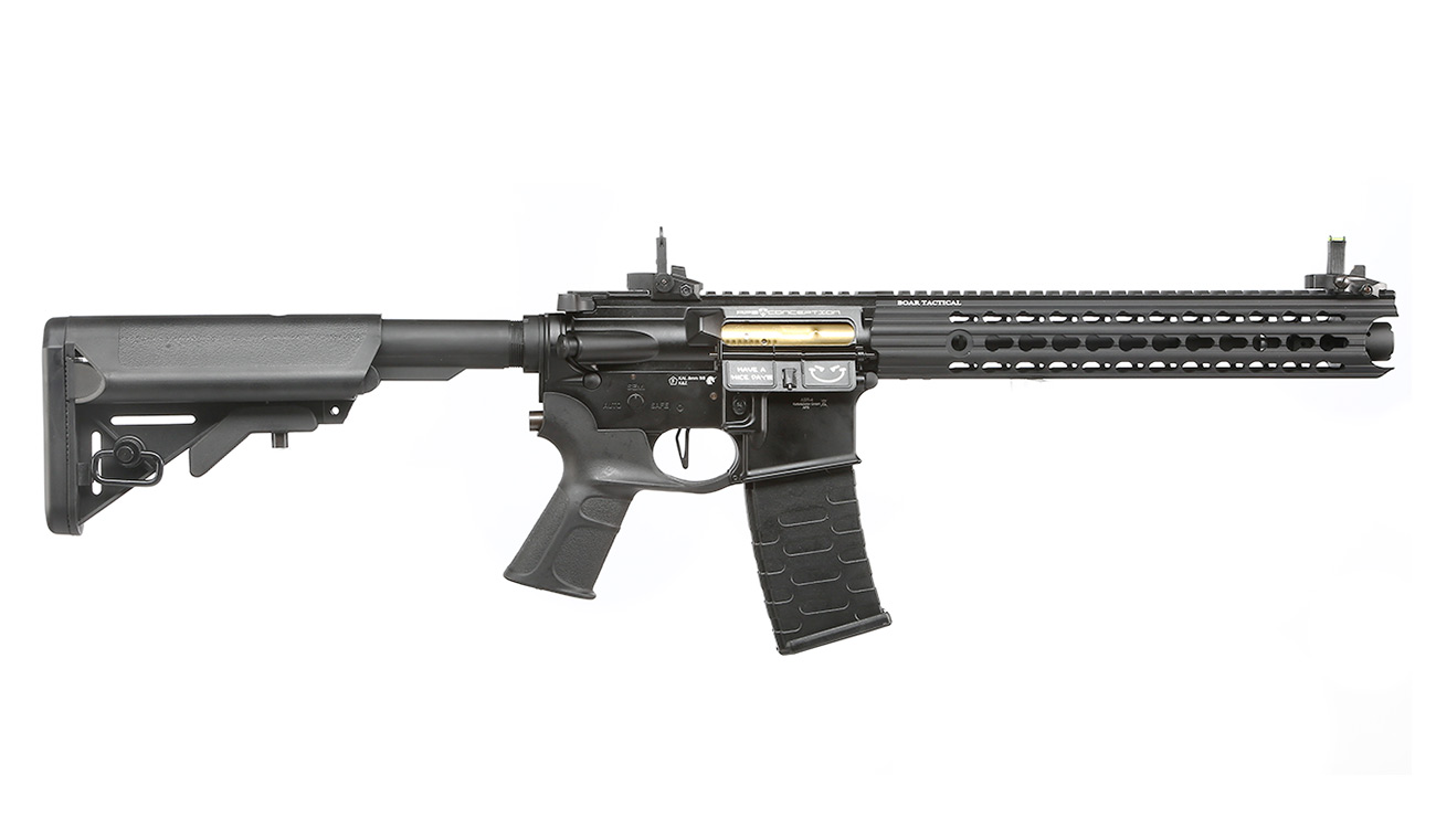 Bei der ASR Rifle Serie von APS Airsoft handelt es sich um robuste und zuverlässige Spielergewehre mit Vollmetallgehäuse. Alle Gewehre aus dieser Serie sind diversen scharfen M4 bzw. AR15 Gewehren nachempfunden und mit einer halbautomatischen Schussfunktion im Kaliber 6mm BB ausgestattet. Der Schussantrieb läuft dabei zuverlässig über die elektrisch angetriebene APS Silver Edge Gearbox, die mit einem speziell bearbeitem Metallgehäuse aufwartet. Ein weiteres interessantes Feature ist die elektromechanische BlowBack Funktion, die durch die verbaute Gearbox hervorgerufen wird. Diese sorgt dafür, dass beim Schießen der seitliche Deko-Verschluss originalgetreu mitbewegt wird. Für den Ersteinsatz werden noch ein Akku mit Ladegerät sowie 6mm BB Rundkugeln benötigt.