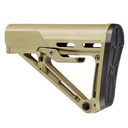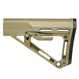 Wie ähnliche Schaftmodelle besitzt der Schaft keine weiteren Fächer für Zubehör. Um bei elektrischen Airsoftmodellen den Akku in der Stock-Tube schnell wechseln zu können, kann die Schaftkappe aufgeklappt werden. An sich ist die Schaftkappe mit einem Pin gesichert. Dieser muss einfach herausgezogen werden und im Anschluss kann die Schaftkappe nach unten aufgeklappt werden. Die Schaftkappe selbst ist aus Hartgummi gefertigt und mit einer rutschhemmenden Struktur versehen.