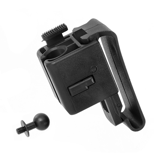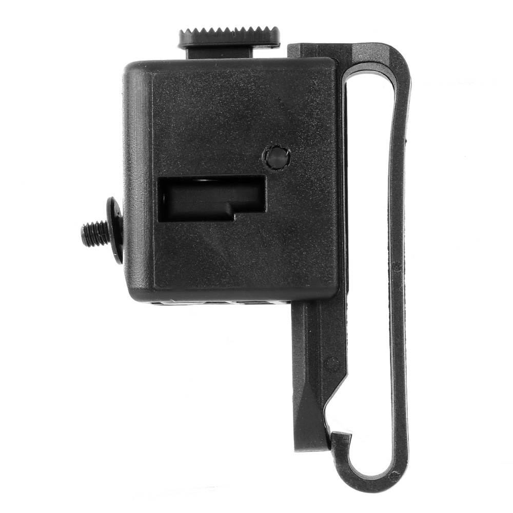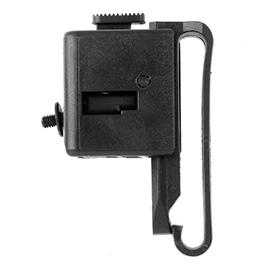 Die Halterung passt für Gürtel bis zu einer Breite von ca. 57 mm, kann aber auch an Molle-Systeme oder andere Schlaufen befestigt werden.