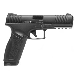 Hergestellt ist die Pistole im authentischen Größenverhältnis und kommt in der bekannten APS Fertigungsqualität. Das Griffstück bzw. der Pistolenrahmen wurde von APS im Slim-Design aus Polymer-Verbundkunststoff gefertigt, wodurch die Pistole von vielen unterschiedlichen Handgrößen sicher gehalten werden kann. Gleichzeitig konnte dadurch das Gewicht reduziert werden. Rutschhemmend wirken bei dieser Pistole die leicht rauen sowie strukturierten Oberflächen im Griffbereich. Vorne findet sich eine taktische 21mm Schiene für diverse Zubehörteile.