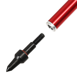 Aluminiumpfeil mit schraubbarer Feldspitze und Halmond-Nock. Der Pfeil ist ca. 36 cm lang und hat einen Durchmesser von 9 mm.