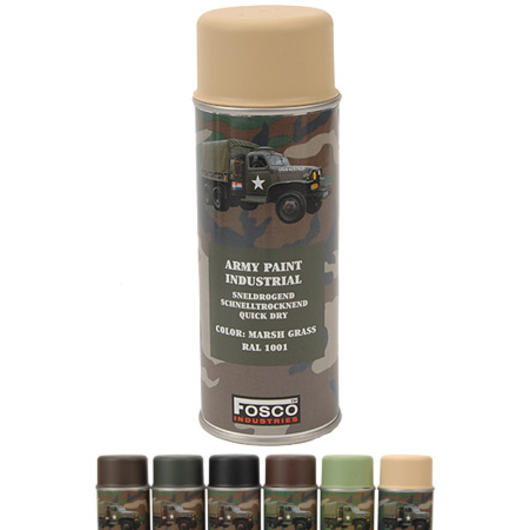 Preiswerte Sprühfarbe zum tarnen von Ausrüstungsgegenständen, Softairwaffen usw. Mit den verschiedenen Farbtönen können interessante Tarneffekte erzielt werden. Sprühdose mit 400ml Inhalt.