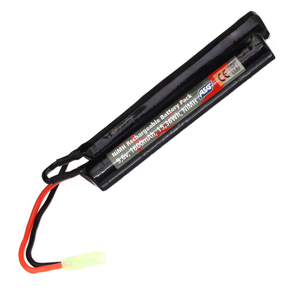 Der NiMH Airsoft-Akku von ASG kommt im gängigen Twin-Type oder auch Two Stick Type genannten Akku-Format. Die Kapazität wird vom Hersteller mit 1600 mAh angegeben, wodurch eine lange Schussdauer möglich ist. Durch die 9.6 Volt Spannung werden Gearjams vorgebeugt.