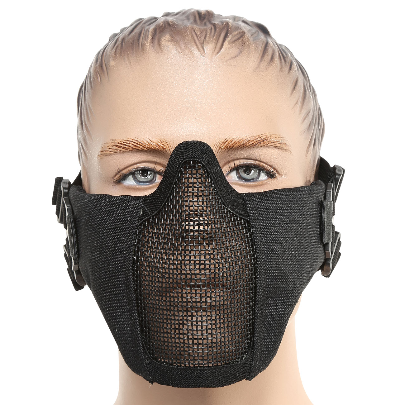 Die Maske deckt nur die untere Hälfte des Gesichtfeldes ab. Um die Augen zu schützen wird zwingend eine zusätzliche Schutzbrille benötigt!