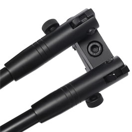 Taktisches Metall-Zweibein von ASG mit Montage für 20 - 22 mm Schienen. Dank dieser Eigenschaft kann das Zweibein an unterschiedliche Gewehre angebracht werden. Die praktische Handmutter erleichtert die Befestigung.