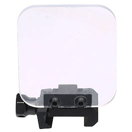 Der Halter selbst besteht aus Aluminium und kann auf sämtlichen 21 mm Schienen mittels der angebrachten Handmutter schnell montiert werden. Wird das Schild nicht gebraucht, kann es wahlweise auch eingeklappt werden. Im ausgeklappten Zustand steht das Schutzschild im 90 Grad Winkel.