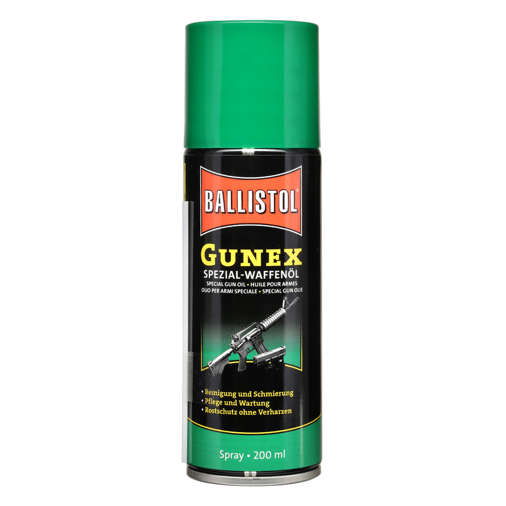 Das Gunex Waffenöl von Ballistol ist die ideale Lösung zur Waffenpflege und Langzeitkonservierung von metallischen Teilen. Die Anwendungstemperaturen reichen von -50°C bis 100°C. Gunex ist silikonfrei und schützt auch bei den schwierigsten Bedingungen, zuverlässig vor Rost, schmiert, unterwandert und verdrängt Feuchtigkeit, löst Pulver- und Schmauchrückstände sowie Harze ungeeigneter Öle.