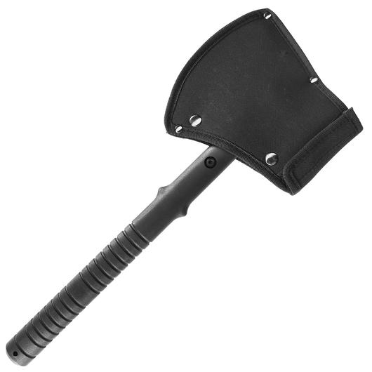 Der taktische Tomahawk Apache III besitzt einen stabilen, dreifach verschraubten Kopf aus 420er Stahl. Stiel und Griff sind aus robustem Nylonfieber, womit auch bei härteren Arbeiten maximale Stabilität geboten wird. Der Apache III eignet sich durch sein geringes Gewicht hervorragend für Camping und Outdoor, kann aber auch als sportliche Wurfaxt eingesetzt werden. Die andere Seite der Klinge kann zusätzlich als Hammer genutzt werden. Das moderne Design des Tomahawk bietet zudem auch noch optisch einiges an.