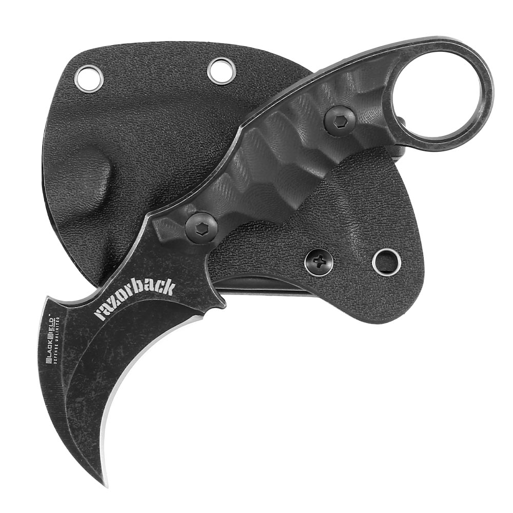 Das BlackField Karambit Messer Razorback wird mit einer praktischen Kydexscheide geliefert, die mit einem Gürteladapter ausgestattet ist. So kannst du das Messer sicher und bequem bei dir tragen und hast es jederzeit griffbereit.