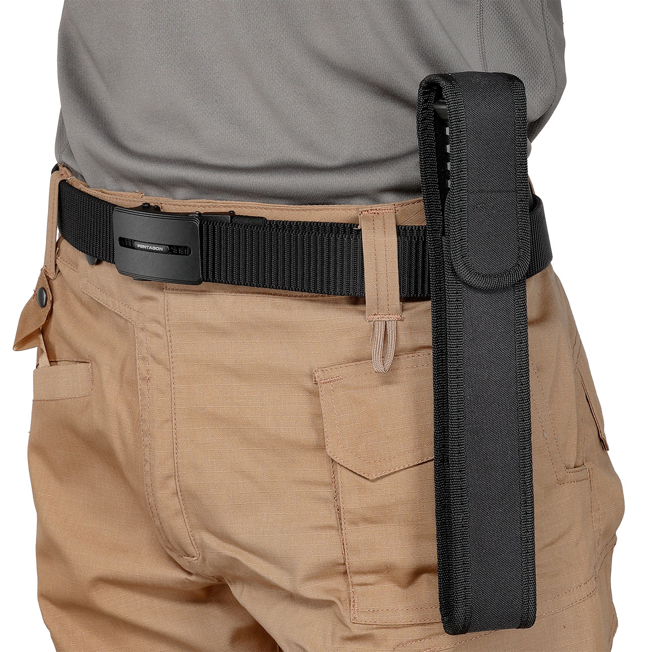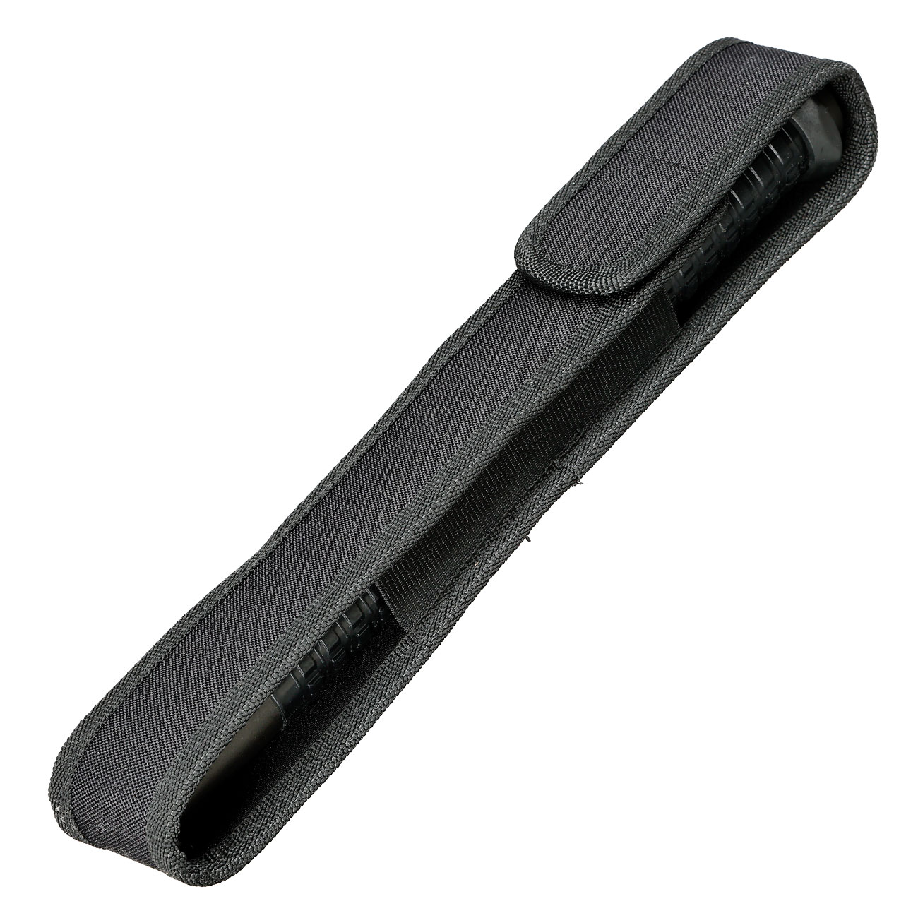 Der Griff besteht aus rutschfestem Hartgummi mit geriffelter Oberfläche für einen sicheren Halt. Der Teleskopschlagstock von Blackfield wird mit einem schwarzen Nylonholster samt Gürtelschlaufe geliefert.
