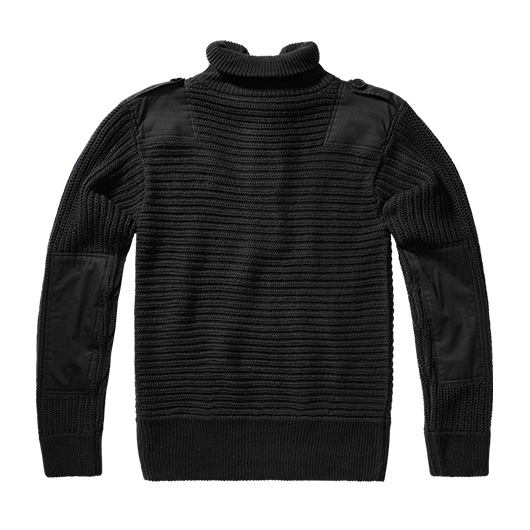 Der Strickpullover Alpin mit hohem Kragen und Strickbündchen an Ärmeln und Saum besitzt zudem eine verstärkte und robuste Ellenbogen- und Schulterpartie.