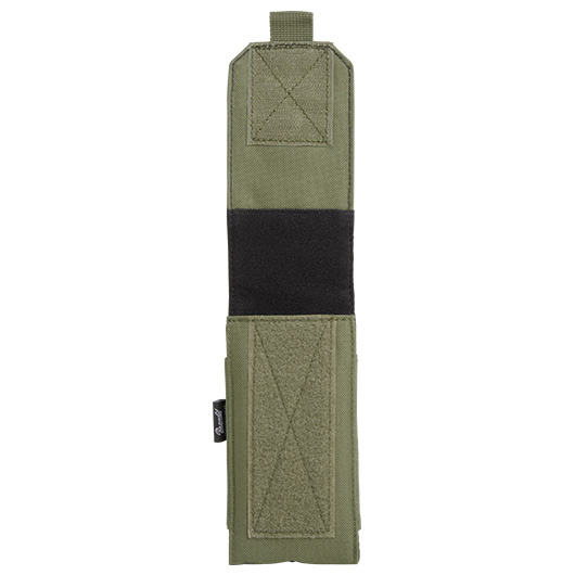 Die Tasche kann am Gürtel befestigt werden und ist kompatibel mit Molle-Systemen. Am Taschenboden befinden sich 2 Ausgänge zur Kabelführung.