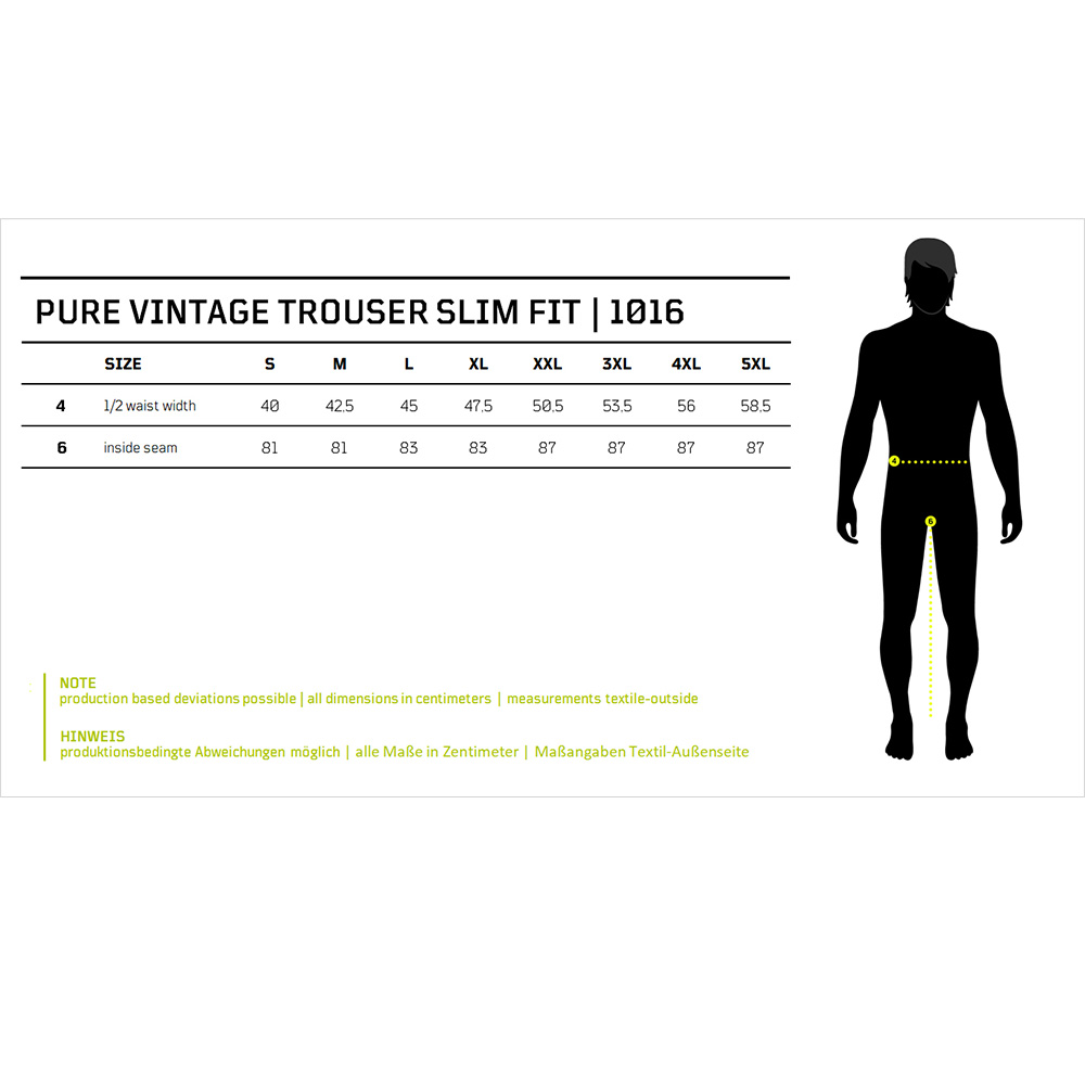 Die Pure Slim Fit Hose von Brandit überzeugt durch ihre bequeme Passform und dem Slim-Fit Schnitt als Freizeit- und Outdoorhose. Genügend Stauraum bieten die zwei seitlichen Einschubtaschen, die vier großen Beintaschen mit Patte und Knopfverschluss sowie die beiden Gesäßtaschen mit Druckknopfverschluss.