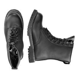 Mit 9-Loch Schnürung, gepolstertem Schaftabschluss, verstärktem Fersenbereich, sowie dreifach genähter, herausnehmbarer Einlegesohle und Stahlkappe ist der Springerstiefel Para bestens für jegliche Einsätze im Gelände oder als Arbeitsstiefel geeignet. Die Profilsohle ist ölresistent und benzinbeständig.