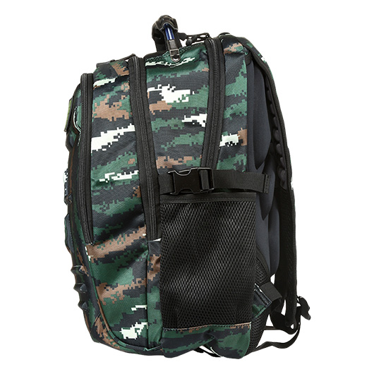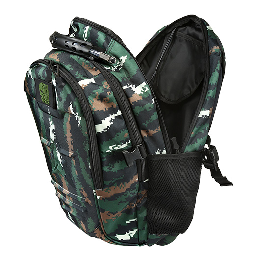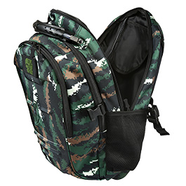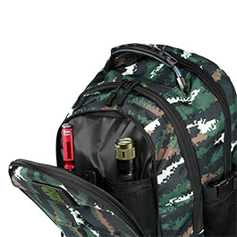 Zwei große Hauptfächer (eines mit Laptoptasche), eine Frontfach mit Organizer und zwei seitliche Netzfächer sorgen für 40 Liter Volumen. Die 3D Prägung auf der Front runden den Freizeitrucksack im Army Style perfekt ab.