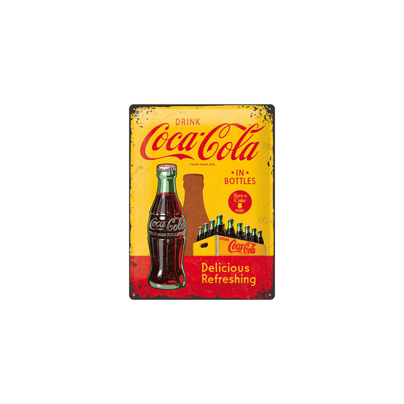 Details zu Blechschild Coca Cola In Bottles Yellow: