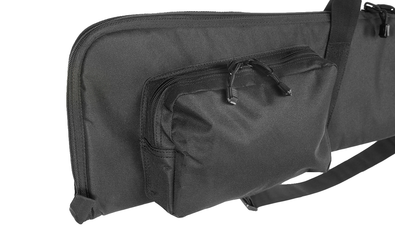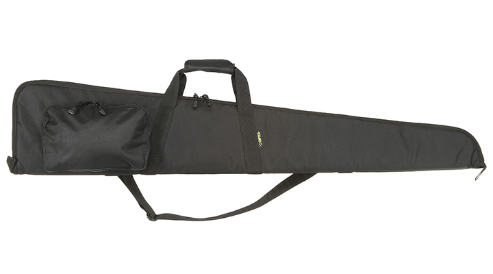 Das schwarze Gewehrfutteral der Marke Coptex bietet ein gutes Preisleistungsverhältnis. Gewehre von 120 Zentimetern Länge können damit transportiert werden. Die Gewehrtasche besitzt auch ein zusätzliches Außenfach (ca. 23 x 18 cm) für Munition und Zubehör. Haupt- und Außenfach sind per Zweiwege-Zipper zu verschließen. Der 3,5 Zentimeter breite Schultertragegurt des Coptex Gewehrfutterals ist längenverstellbar. Außerdem besitzt das Futteral zwei zusätzliche Tragegriffe und ist im Inneren gefüttert.