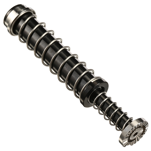 CowCow Technology fertigt den Spring Guide Rod komplett aus hochwertigem Edelstahl. Für eine sehr gute Passgenauigkeit und Funktion sorgt dabei das angewandte CNC-Herstellungsverfahren. Die eingebaute Tuningfeder ist stärker als die im Auslieferungszustand der Pistole verwendete und sorgt dadurch für einen stärkeren Rückstoß und eine schnellere Wiederladegeschwindigkeit beim Schießen. Das passgenaue Tuningteil wird einfach gegen den Original Spring Guide Rod getauscht.