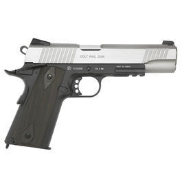 - Cybergun Colt 1911 Rail Gun Vollmetall CO2 Blowback Stainless Dual Tone Version