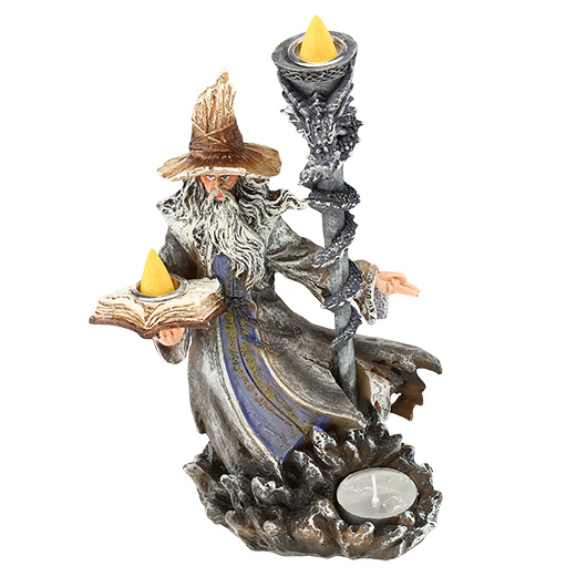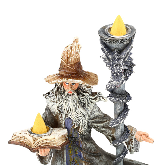 Sehr schön gestaltete, und per Hand bemalt ist diese Dekofigur in Gestalt eines Zauberers. Der Magier kann zum räuchern und als Teelichthalter verwendet werden.