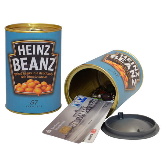 Die absolut unscheinbar wirkende Heinz Beanz Dose ist das ideale Versteck im Vorratsregal oder auf Reisen. Keiner würde auf die Idee kommen in der unauffälligen Dose, mit Originaletikett von Heinz Beanz, nach Wertsachen zu suchen. Die Dose lässt sich durch einen gut versteckten Schraubverschluss am Boden öffnen und schließen. Der Inhalt ist somit sicher vor Feuchtigkeit und unerwünschtem Zugriff.