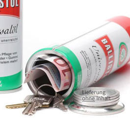 Unscheinbares Versteck, das aus einer original Dose von Ballistol gefertigt wurde.