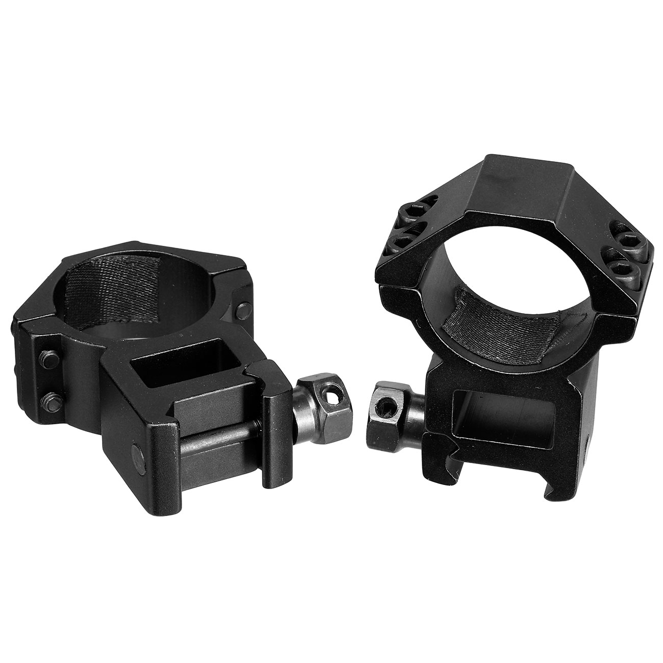 Die Double Bell Zielfernrohrringe bestehen aus stabilem Aluminium und sind geeignet für Zielfernrohre mit einem Rohrdurchmesser von 30 mm. Die Ringe werden an den 20 - 22 mm Schienen mit einer praktischen Handmutter fixierbar. Dies ermöglicht eine einfache und schnelle Montage sowie Demontage ohne zusätzliches Werkzeug.