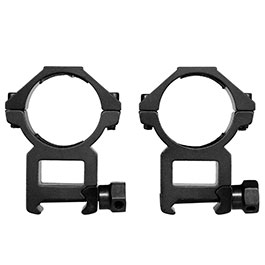 Diese Ausführung der Zielgerätringe ist universell bei allen 20 - 22 mm Schienen passend. Es handelt sich um sogenannte High Profile Rings, bei denen das Zielfernrohr etwa 20 mm über der Montageschiene positioniert wird.