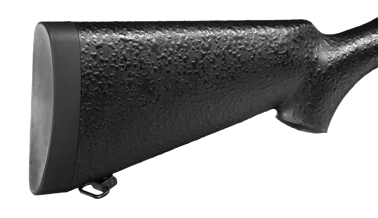 Sehr schön hergestellt wurde auch der Schaft des Double Bell VSR-10 Airsoftgewehrs. Dieser besteht aus Polymer-Verbundkunststoff und ist dadurch sehr widerstandsfähig. Auffällig ist vor allem die raue Oberflächenstruktur, die dem Original M700 Gewehr sehr nahe kommt. Vorne und hinten findet man beim Schaft jeweils eine Tragegurthalterung. An der Hinterseite ist eine weiche Schaftkappe aus griffigem Gummimaterial angebracht. Diese sorgt für einen rutschsicheren Sitz des Gewehrs im Anschlag. Das Magazin wird im Handguard-Bereich des Schaftes eingesetzt und besitzt eine Kapazität von ca. 25 - 30 Schuss.
