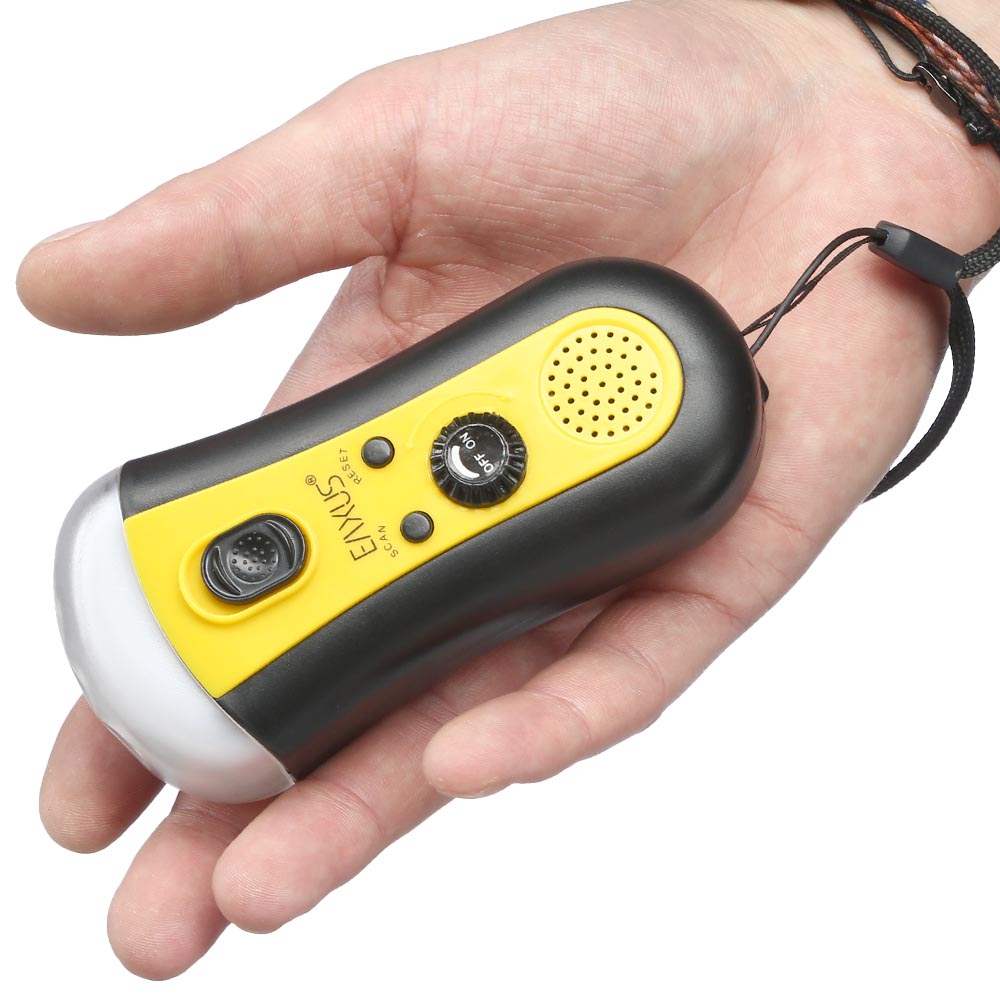 Mit dem Schiebeschalter kann die Beleuchtung ganz einfach ein- und ausgeschaltet werden. Die einzelnen LEDs verfügen über eine Lebensdauer von bis zu 50.000 Stunden und sind besonders langlebig. Mit dem Drehknopf schaltest Du das FM Radio ein, das auch über eine Scanfunktion mit einer automatischen Suche verfügt. Praktischerweise ist die Antenne für die Radiofunktion unauffällig in die vorhandene Handschlaufe eingearbeitet. Perfekt für Camping, Wandern, Angeln oder Notfallsituationen. Das robuste, leichte Gehäuse und die kompakten Maße machen die LED Dynamo Lampe zum idealen Begleiter - einfach zu transportieren und verstauen.